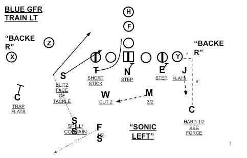 This pressure has a lot in common with Saban’s “Sonic” concept. The strong safety and nickel both attack off the edge, creating a fast overload to the field side. The field corner trap the flat, while the backside safety rotates over to become the deep half defender to the field. It is a heavy rotation that can stress an offense’s protection rules and force the quarterback to speed up his read. The downside is that if the offense happens to be in the perfect call, a 4-strong swing concept that can put stress on the coverage. Even so, it is a classic pressure worth keeping in the call sheet, especially when you need to create quick edge heat and disrupt timing routes to the field.